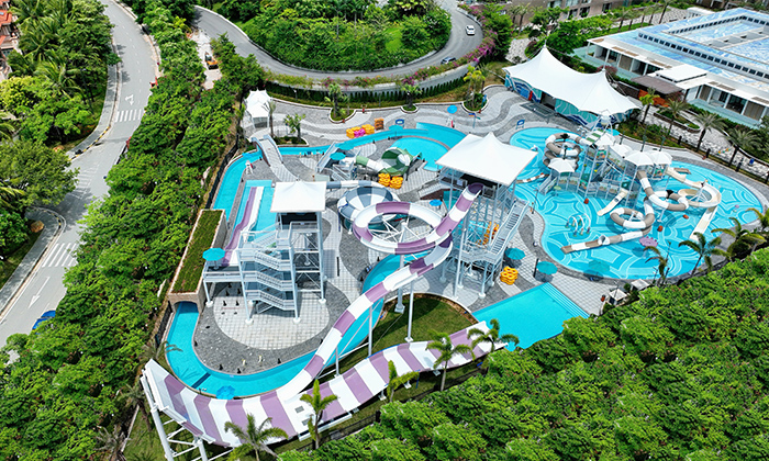 威珀斯水世界占地7000平方米,由冲天回旋滑梯、儿童戏水池、小喇叭、漂流河、太空盆和彩虹滑梯6大设施项目组成。宾客可一边畅爽泳池的清凉,一边嗨玩丰富水设施,在威珀斯收获休闲度假与刺激好玩双重度假体验。
