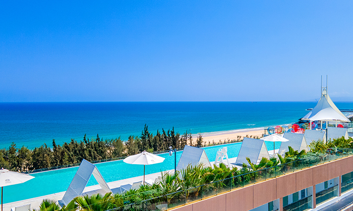 52米聆海高空泳池,占地面积300平方米,位于酒店顶层11层。蔚蓝无际,奢享顶层泳池度假美学;浪漫自由,宛如遨游天空仿佛跃入大海;聚集新潮与美感于高空,是艺术灵感摄影的起源地。